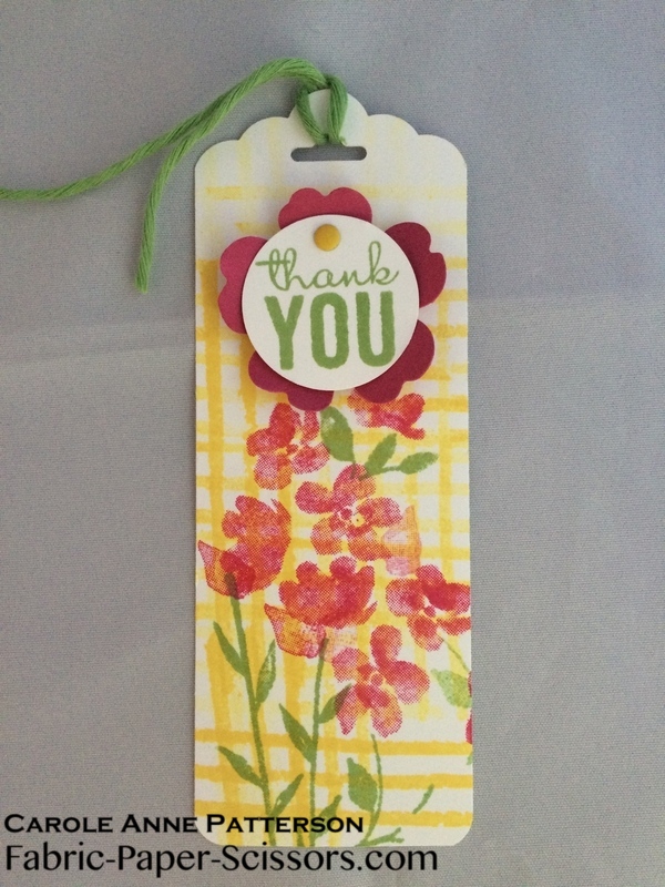 How pretty is this simple tag, I love punches and love these colors. You could make it longer and laminate it for a bookmark. Find the instructions here