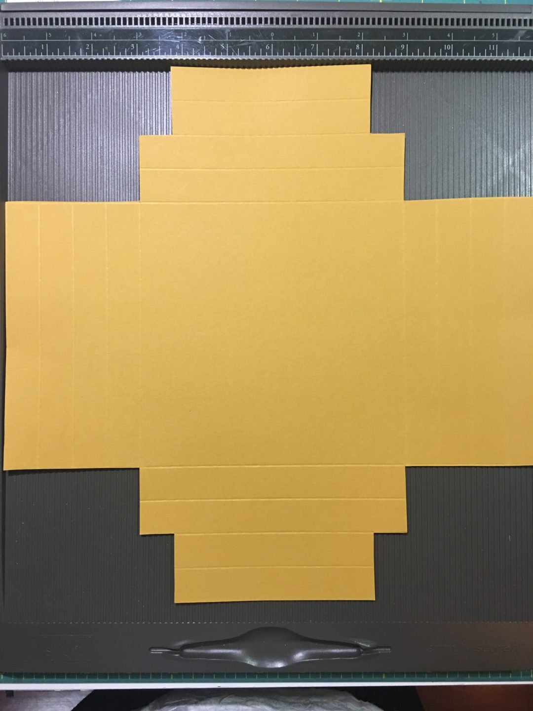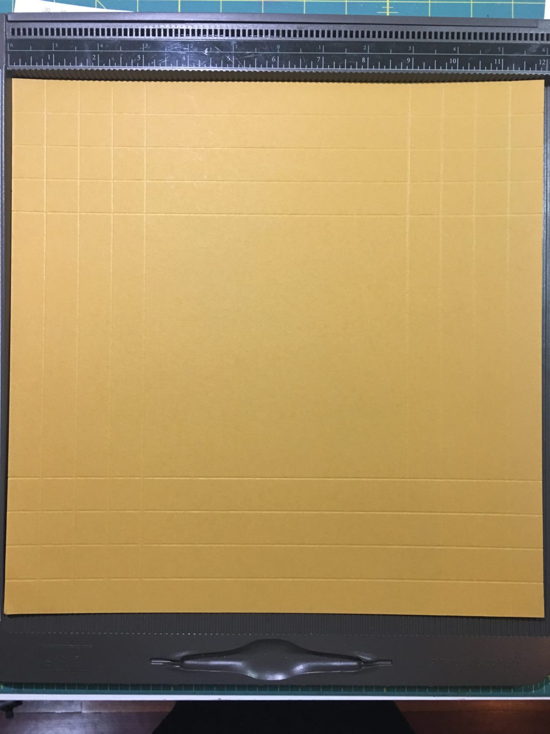 img_0833 Score the 12″ x 12″ piece on all four sides at the 1″, 1-1/2″, 2-1/2″ and 3″ marks.