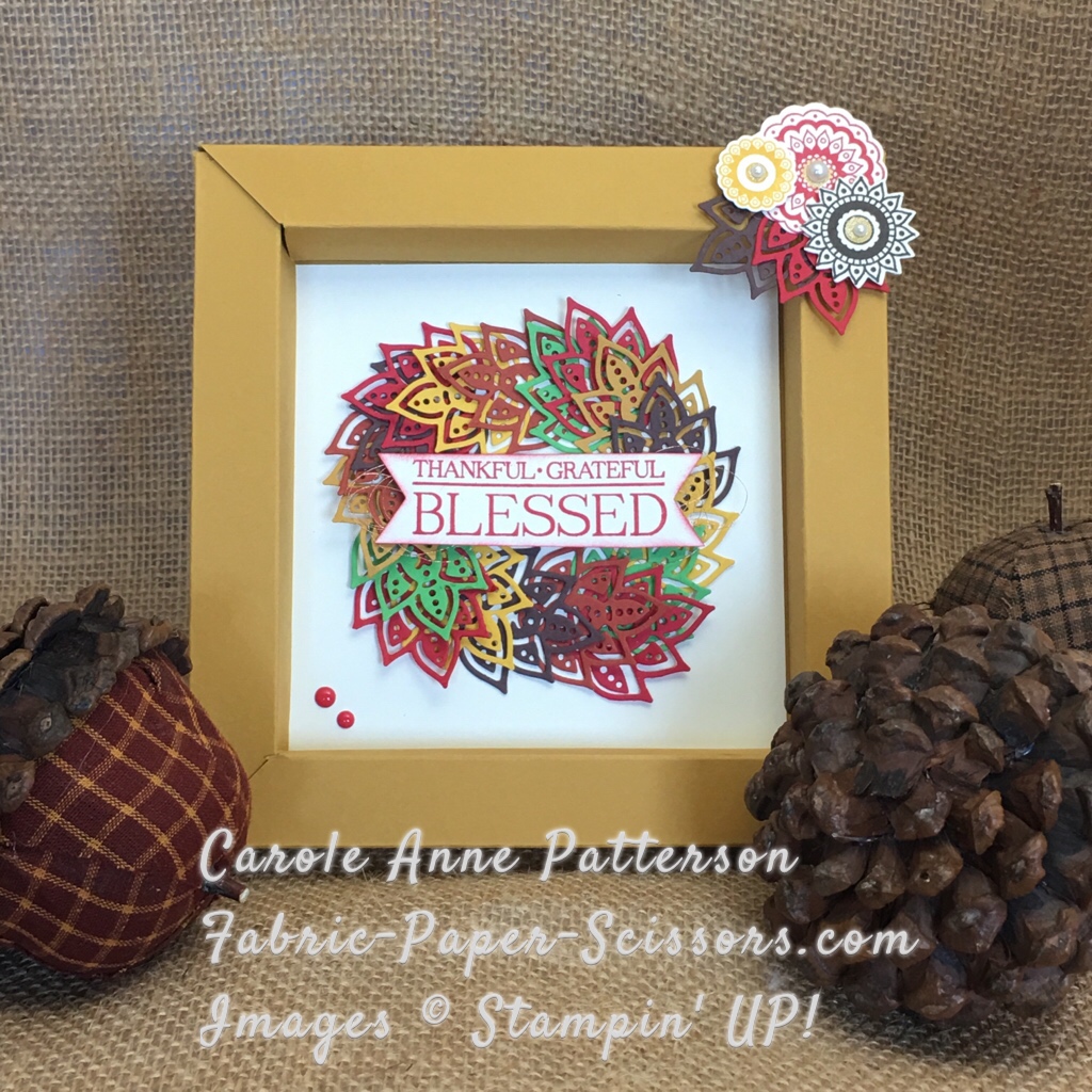 1. Use the Paisley Framelits Dies and cut lots of the gorgeous open leaf pattern in every color. You will use these for the wreath and two on the frame.