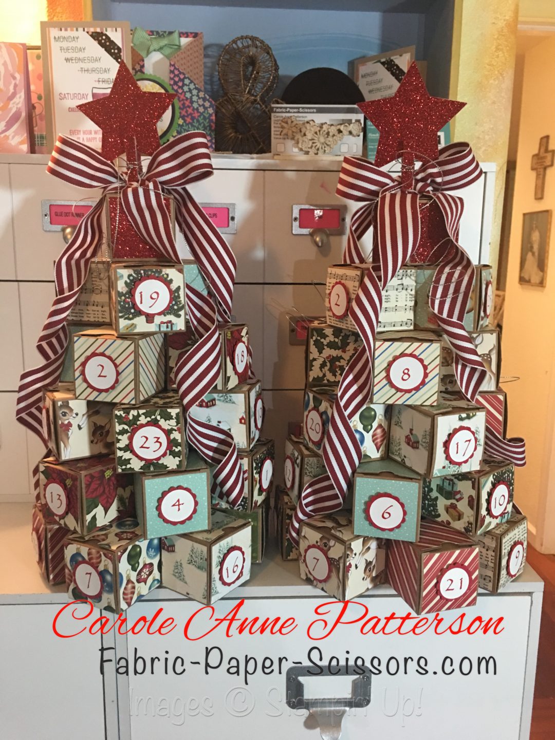 I love this Advent Tree! I saw a version on Stampin’ Up! and I knew I had to make it my own. Did I say I love it? Well, it’s even more adorable in person because the Home for the Holidays DSP adds an air of old fashioned goodness to the cute little boxes. For this year’s 2016 version, I used Candy Cane Lane Designer Series Paper.
