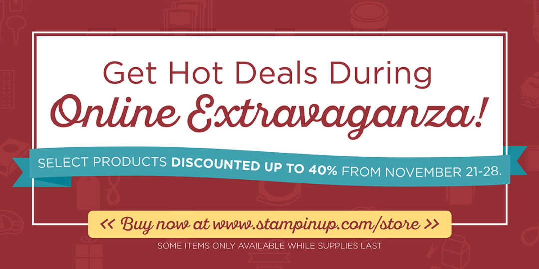 This is it! Cyber Monday 24-Hour Door Busters and the very last and final day of the Stampin’ UP! Online Extravaganza…have you ordered your favorites yet? Remember this is the last day, last moments to save!