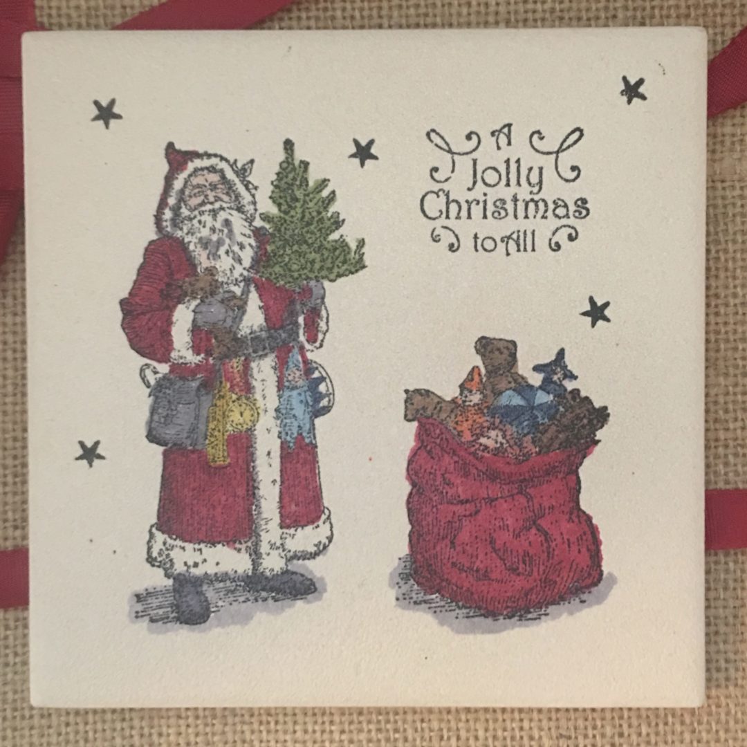 I’m posting a few cute ideas that are still possible for you to create for Christmas. You can search back and see the other coasters that I’ve made plus the instructions are with them. These are painted with alcohol markers (Stampin’ UP! retired but Copics or other alcohol based markers will work).