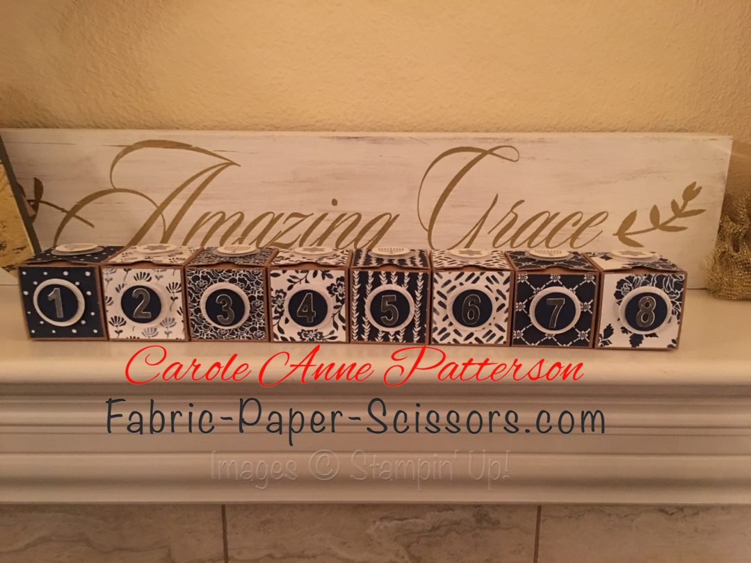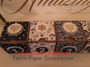 My Hanukkah idea–8 tiny boxes that open for the 8 days of Hanukkah (SU retired tiny boxes and yes, I bought on sale before they were gone). The paper is Floral Boutique Designer Series Paper and the stamp set used is Every Occasion.