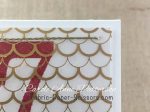 Cut the Gold Glimmer Paper a little less than 5-1/4″ x 3-1/4″ (exact). Die cut by placing the die 3/4″ from the bottom. I did this so that I would have a nice placement for the sentiment.