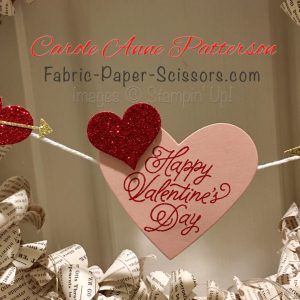 I made a quick little banner for last year’s Season to Season Wreath. It took just a few minutes to change the banner from Christmas to Valentine’s Day…so easy! I used the stamp set Sealed with Love, stamped Happy Valentine’s Day using Real Red on a piece of Blushing Bride Cardstock and I cut out the heart shape using the Sweet and Sassy Framelits. I stamped a few more smaller hearts from the Sealed with Love stamp set on Blushing Bride Cardstock and cut those out using the smaller hearts from the Sweet and Sally Framelits. I always like a little bling, especially for Valentine’s Day, so I used Red Glimmer Paper, cut more hearts and cut the arrow from the Love Notes Framelits using Gold Glimmer Paper. Look at my previous Heart Wreath Post to see the adorable little envelopes. Look further back on my BLOG and find the little Monster Card, he’s holding a string of hearts that I stamped from the same bundle called Sealed with Love, the raised hearts on the side are from the same bundle and it’s a die cut so easy peasy…love it and it’s not just for Valentine’s Day. Wait…I’ll just pop in a photo so you don’t have to look back.