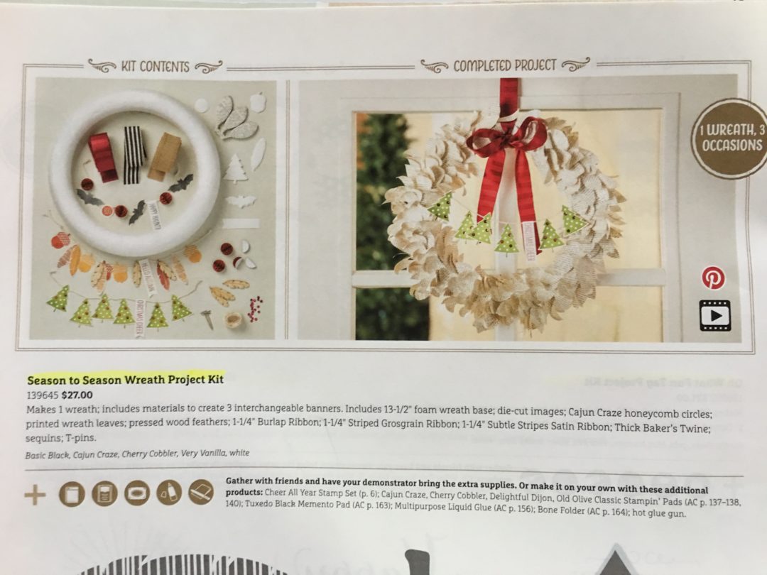 Do you recognize this wreath? Remember let year when we made the Season to Season Wreath with three banners? Christmas, Fall and Halloween banners came with it. If you don’t remember, there’s a photo below. It was a great project and I keep my wreath hanging on the door of my studio. Even if you don’t have this project, you can add a simple banner to any wreath…well, maybe not any but quite a few.
