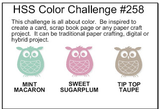 I love Card Challenges, I really do! I make a list every week but sometimes I just can’t get it done but this week I’mย excited to create one card that will work for TWO challenges! In the first challenge, #TGIFC96, I’m channeling the creative and talented Bibi Cameron who is fabulously famous for her watercolor flowers. In the second challenge, #HSSCC258, I’m using the exquisiteย combination of Mint Macaron, Sweet Sugarplum and Tip Top Taupe, don’t they sound yummy?! Sad to say that Mint Macaron and Tip Top Taupe will be retiring colors in June so stock up now with ink pads, reinkers and paper. I’ll be sad to see them go…get yours now!