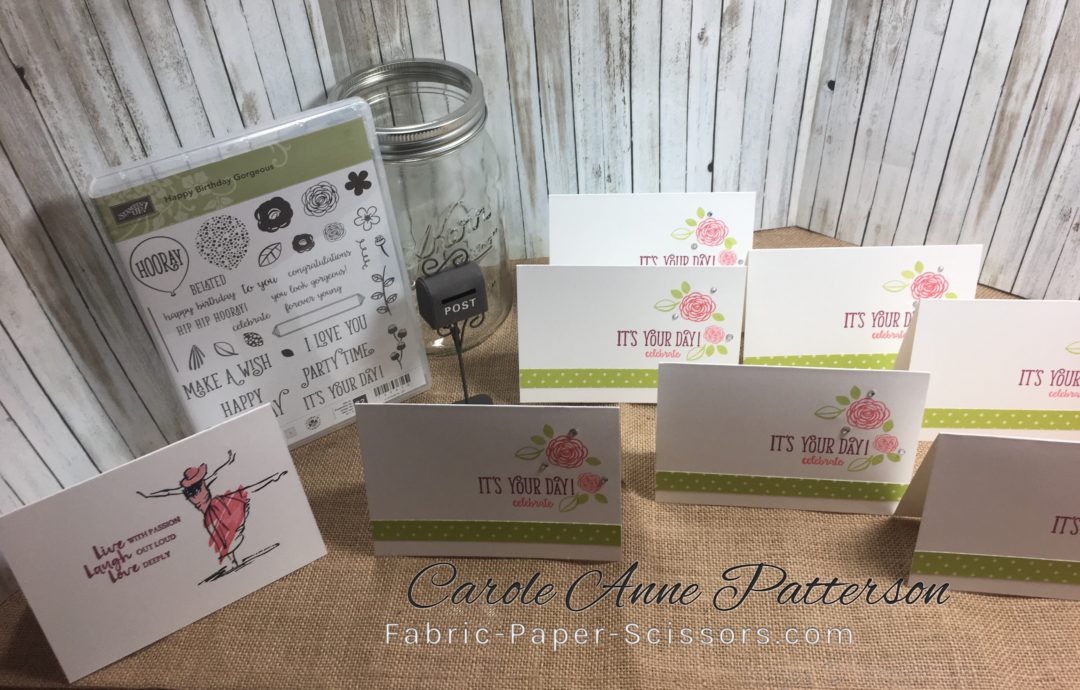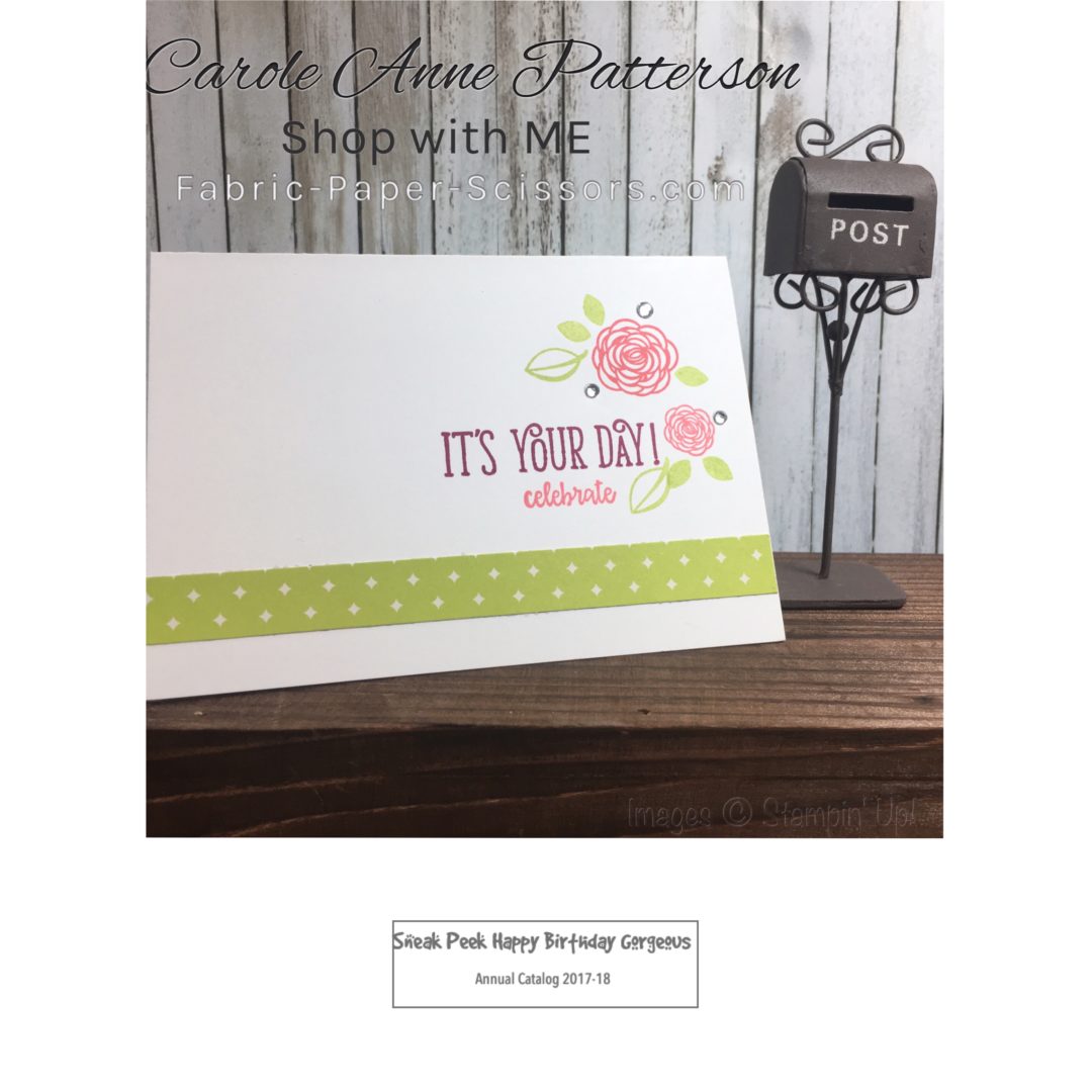 I can’t wait to share this set with ALL of you because even though it’s called Happy Birthday Gorgeous, this card is NOT a birthday card. On the outside it says It’s Your Day – Celebrate but on the inside it reads “Live with Passion, Laugh out Loud, Love Deeply” and I’m sending these cards out this week. I love the Beautiful You set and it pairs perfectly with the new Happy Birthday Gorgeous set. There are soooo many adorable sentiments, flowers, balloons, leaves…too many to mention because there’s 32 photopolymer pieces in this stamp set. WOWZIE! Get it on your list for June 1st.