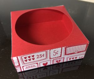 - Cut four pieces of Designer Series Paper — 1″ x 3″ and adhere to the box.