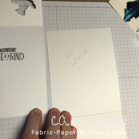 - Place your Smoky Slate piece on top of the front of the Whisper White card and secure with a paper clip or a little bit of snail.