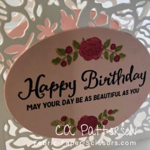 - Die cut four ovals out of Powder Pink (or four out of Whisper White and Lots of Labels. (Directions will continue for the Powder Pink with the Lots of Labels directions at the bottom).