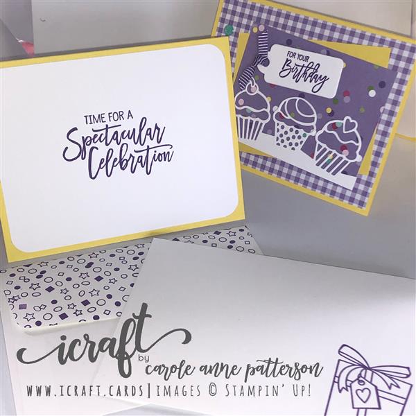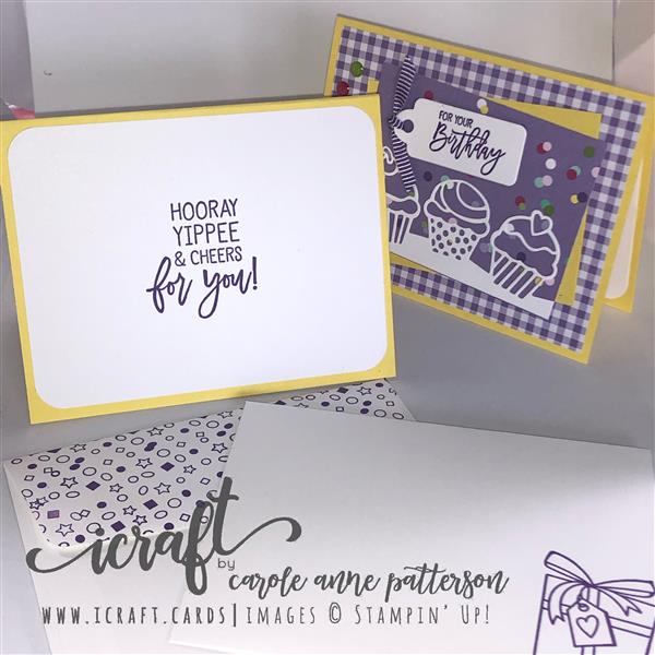 I love everything about this card and it’s just sooooooo happy! Would you like to get ALL of the things to make it? Well, now is the time because it’s retiring and will be gone forever Or it will be listed on eBay for twice the price. Birthday Cheer Bundle is $45 (page 17). Buy it NOW and get the BUNDLE price at 10% off along with the How Sweet It Is Designer Series Paper, the Gingham Galla Paper. These will be gone! I used Pineapple Punch Cardstock as the card base. Can you say HAPPY? The How Sweet It Is Designer Series Paper has colors Coastal Cabana, Gorgeous Grape, Granny Apple Green, Melon Mambo, Pineapple Punch and of course Whisper White. Add the Gorgeous Grape Striped Ribbon and the Gorgeous Grape Classic Stampin’ Pad and you’ll have everything you need to use these instructions to make easy cards. You can make so many cards using these two bunches of Designer Series Paper and a few colors of cardstock. The stamp set and matchine dies also has a cupcake and a gorgeous row of presents…there’s so much you can do with this set for the happiest birthday cards! A shoutout to the gal from BlueLine Stamping who was my inspiration CASE for this card.