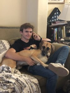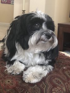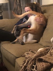 Our household has two cute Havanese pups named Hazel and Gunny—non shedding and small. Hazel, the smallest rules the house. So back last summer my son was away an equestrian show with his girlfriend in Oklahoma and we get a face time call with this BIG puppy in the picture that he “loves”, his girlfriend loves, his girlfriends Mama loves, he’s adopted him and can he bring him home. Guess what? We didn’t say no!! Suckers for a pretty face.