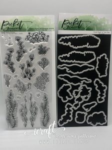 Next, I chose a stamp set called Under the Sea Floor (also from Picket Fence Studios), picked out a seaweed stamp to use for hair, stamped it on masking paper and fussy cut. I stamped the image on the top of the head, masked it off and stamped on either side of the mask. Then masked the edges and stamped a little bit more. Thus creating crazy hair on top of the head. Perfect right?!?