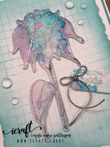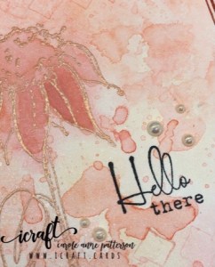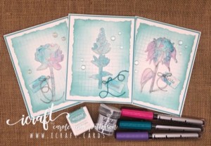 The next card was ink smushed using Karin Markers and a spritz of water, then embossed with Champagne Embossing Powder. If the flower needed more emphasis on the petals, I deepened the petals by watercoloring with the Karin Markers.